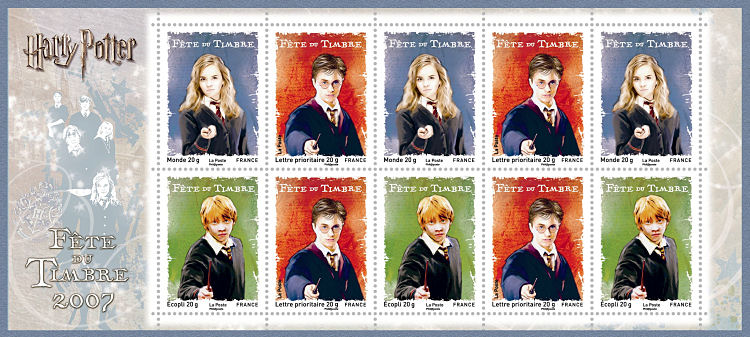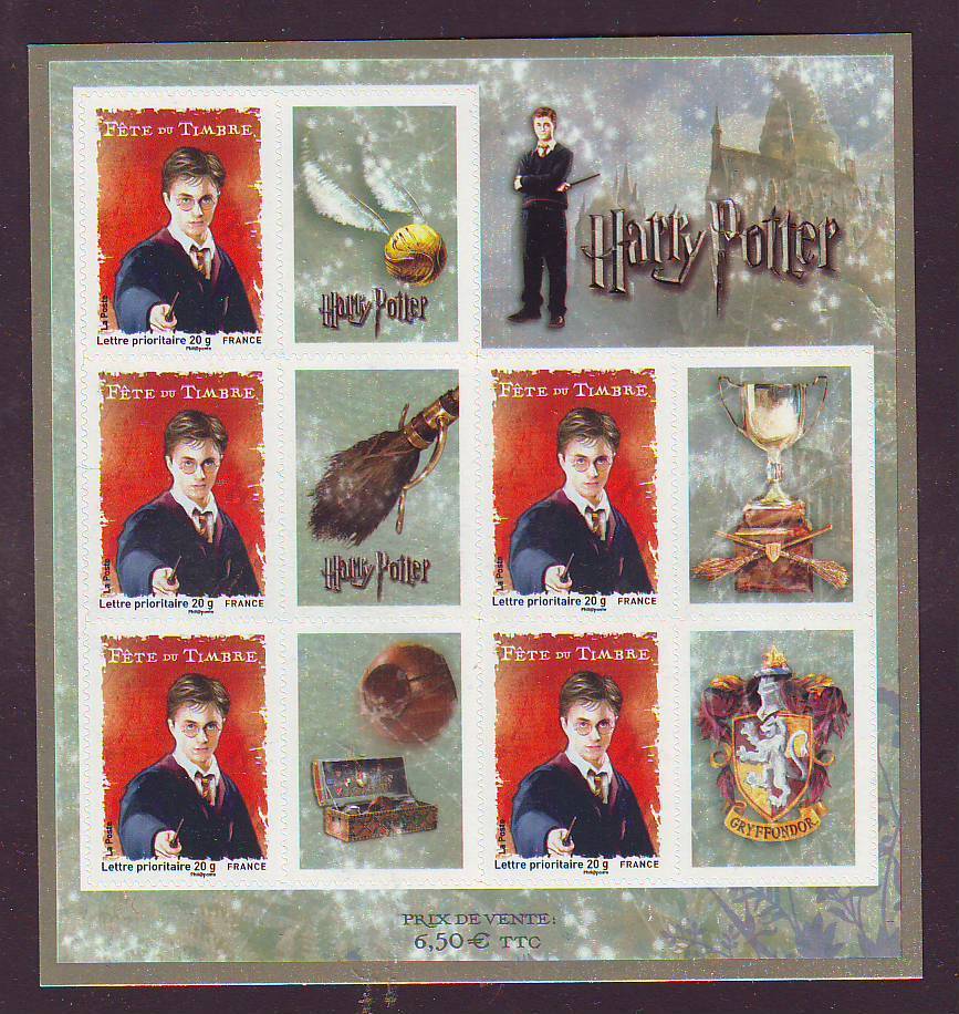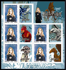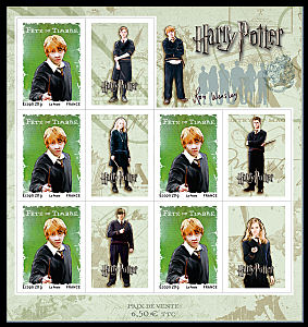 Ce ne sont pas vraiment des héros de BD mais plutôt de cinéma : Harry Potter et ses amis débarguent en force : Pas moins de 3 timbres différents délcinés en feuilles, blocs, carnet et bloc-feuillet. Un record pour surfer sur le succès du petit magicien.