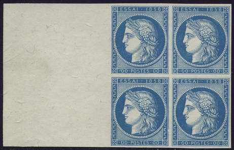 Un bloc de quatre ou de six timbres-poste comportant le nom de l’imprimeur est appelé "bloc avec empreinte".