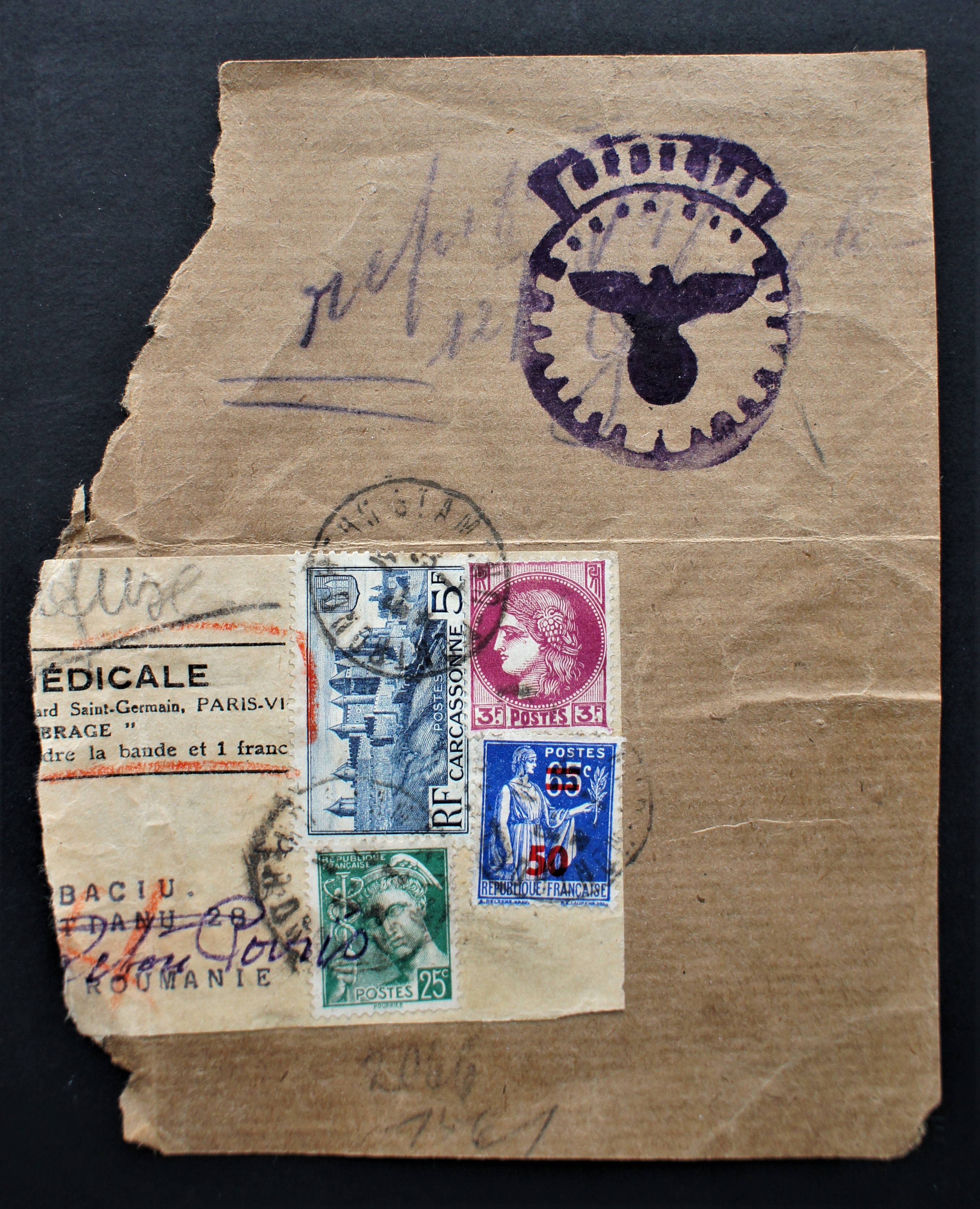Votre fragment est semble t-il issu de l’envoi d’une publication médicale car il comporte une bande journal. Cette revue était à destination de la Roumanie (pays occupé à cette période par l’Allemagne).