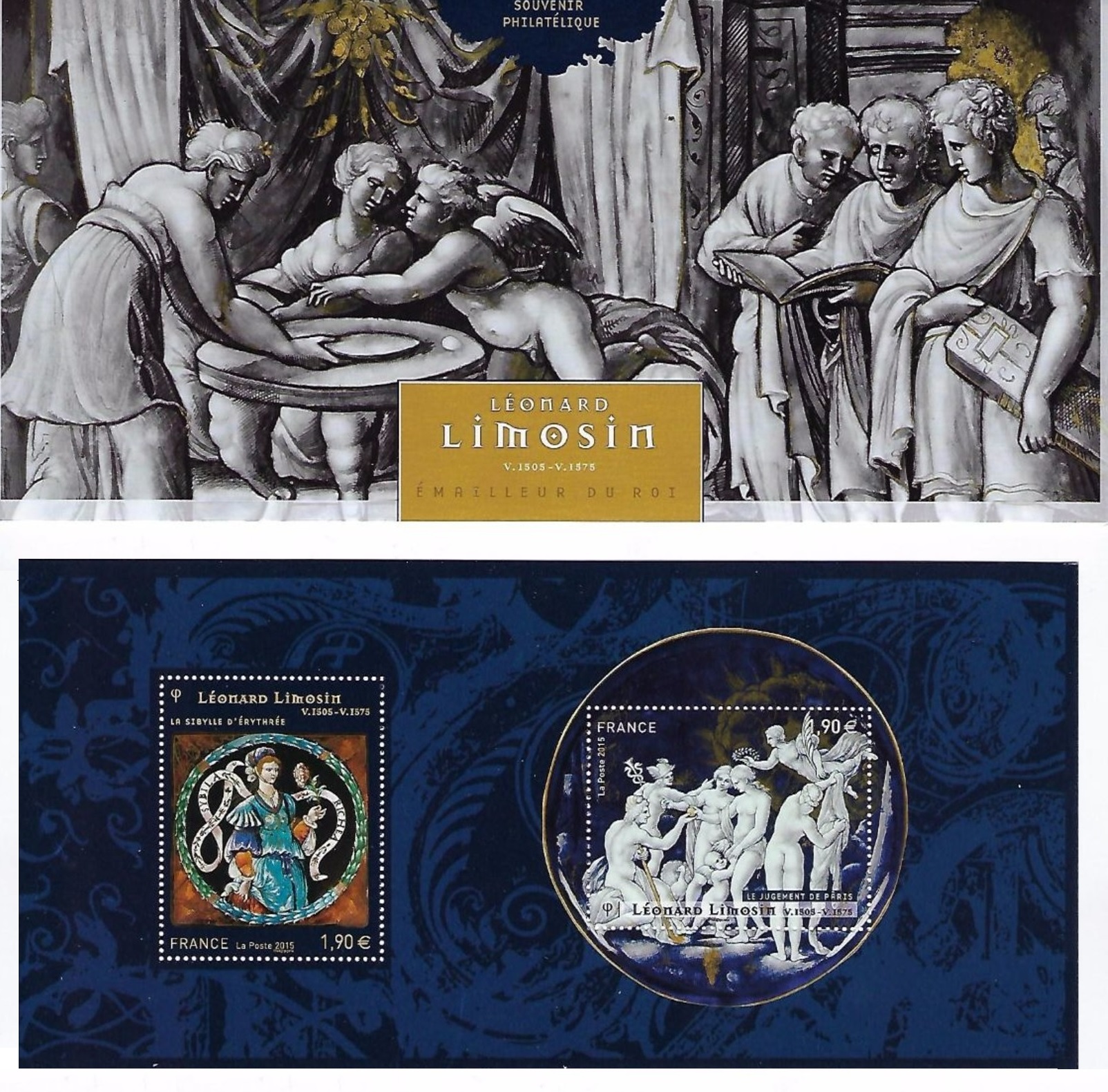 Le bloc est illustré par le plat "le Jugement de Pâris (1562 ; émail peint, d’après une composition de Raphaël) et la plaque émaillée la "Sibyla Richea"(v.1535-1540 ; émaux polychromes, agrémenté d’un contour reprenant le cadre d’un échiquier (1537 ; émail peint inséré dans un cadre en bois).