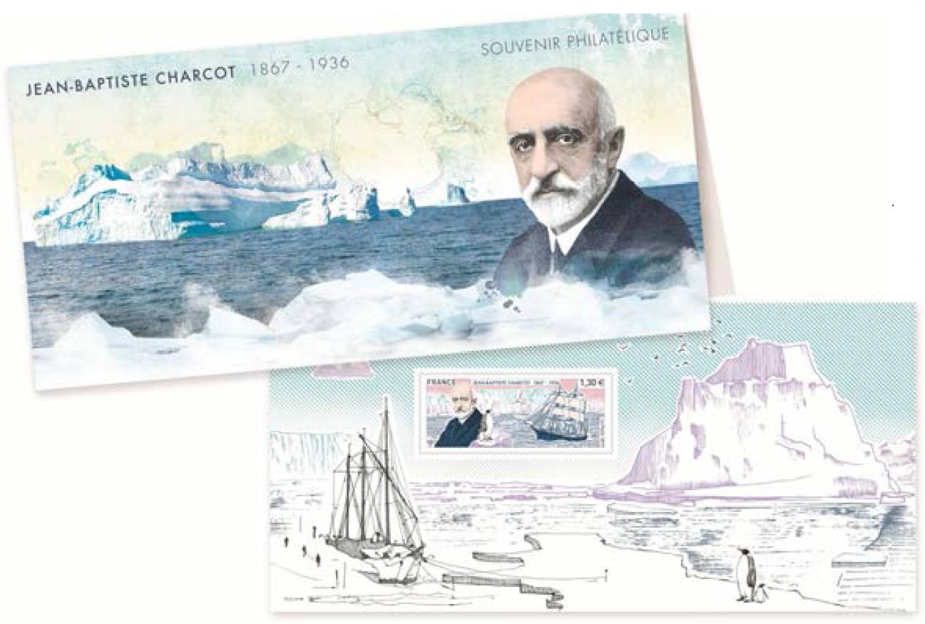 La Poste émet un timbre à l’occasion du 150ème anniversaire de la naissance de Jean-Baptiste Charcot. Le timbre représente Jean-Baptiste Charcot dans son univers, les régions polaires, les manchots, son navire le Pourquoi-Pas ? et la mouette Rita sa mascotte.
