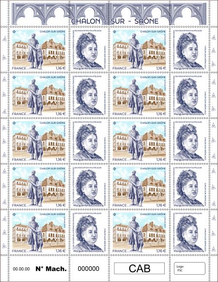 La Poste émet un timbre sur Chalon sur Saône avec une vignette attenante à l’effigie de Marguerite Boucicaut à l’occasion du 96ème congrès de la FFAP.