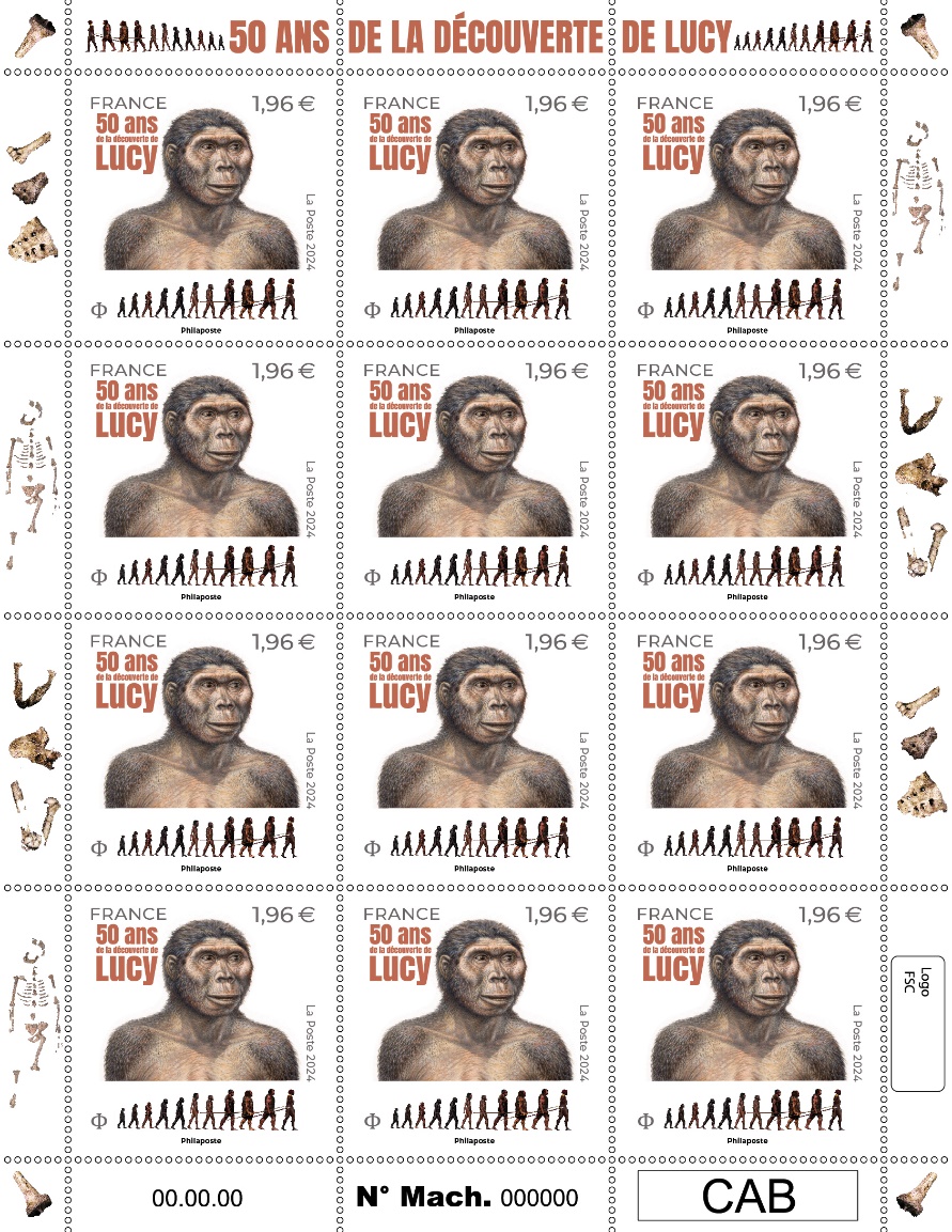 La Poste émet un timbre à l’occasion des 50 ans de la découverte des ossements de Lucy.
