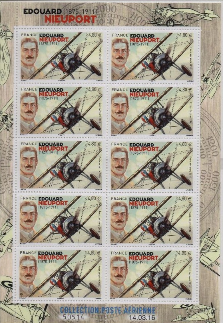 La Poste émet un timbre - catégorisé ’Poste aérienne’ - en hommage à Edouard Nieuport précurseur de l’aviation.