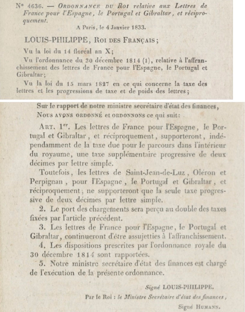 Ordonnance N° 4636 du 04/01/1833 Scan d’un texte officiel publié au Bulletin Officiel des Lois.