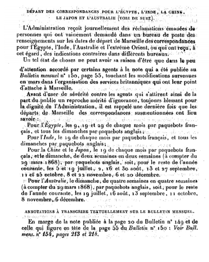 Notification de juin 1868 Scan d’un document officiel publié au Bulletin mensuel des Postes et Télégraphes.