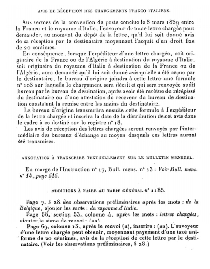 Scan d’un document officiel publié au Bulletin mensuel des Postes et Télégraphes.