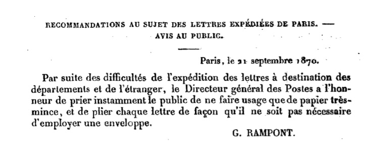 Notification du 21/09/1870 Scan de la reproduction officielle d’un texte officiel