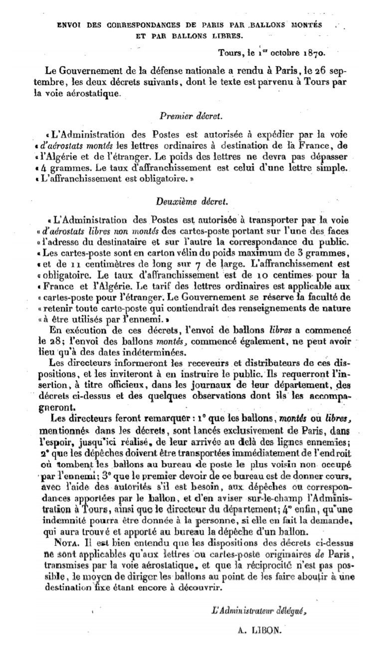 Notification du 01/10/1870 Scan de la reproduction officielle d’un texte officiel