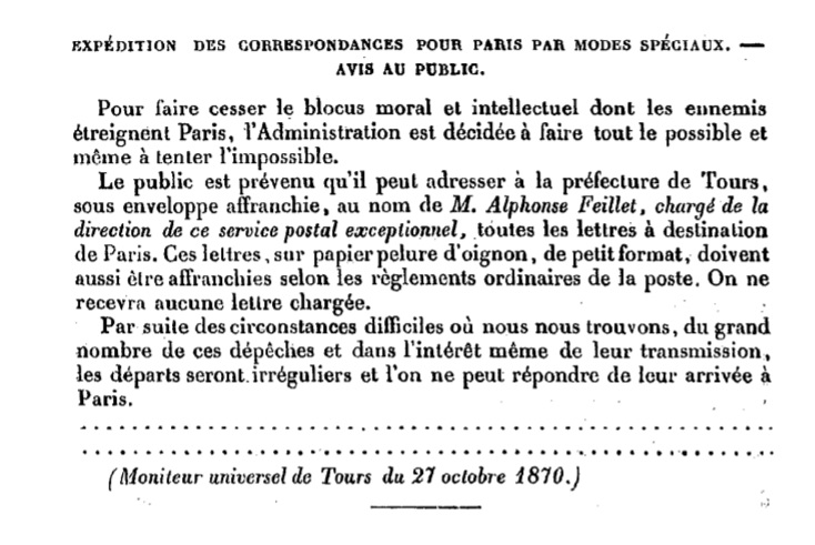 Notification du 27/10/1870 Scan de la reproduction officielle d’un texte officiel