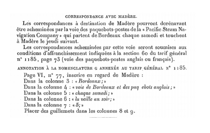 "Correspondance avec Madère."
