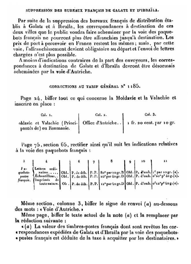 "Suppression des bureaux français de Galatz et d’Ibraïla."