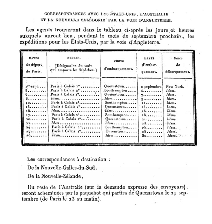 Notification d’août 1877 Scan d’un document officiel publié au Bulletin mensuel des Postes et Télégraphes.