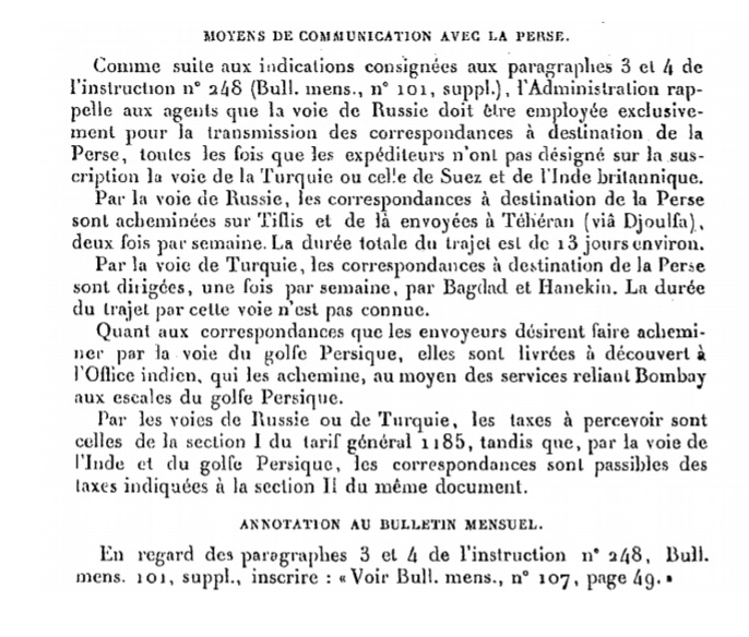Notification de février 1878 Scan d’un document officiel publié au Bulletin mensuel des Postes et Télégraphes.