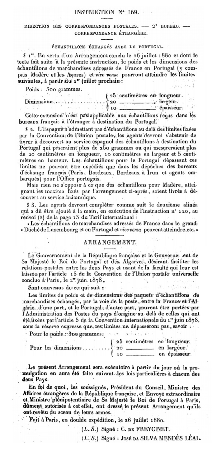 Instruction N° 169 de juin 1881 Scan d’un document officiel publié au Bulletin mensuel des Postes et Télégraphes.