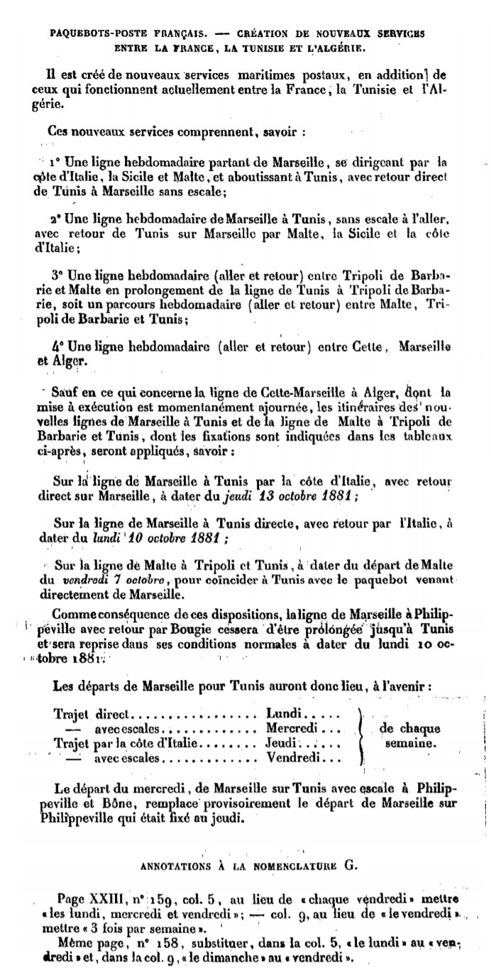 "Paquebots-poste français - Création de nouveaux services entre la France, la Tunisie et l’Algérie."