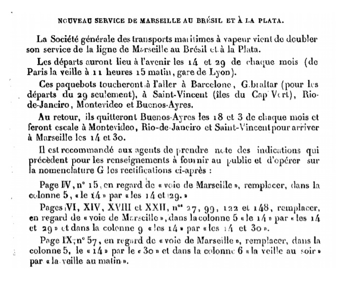 "Nouveau service de Marseille au Brésil et à La Plata."