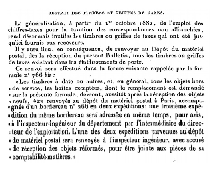 Scan d’un document officiel publié au Bulletin mensuel des Postes et Télégraphes.