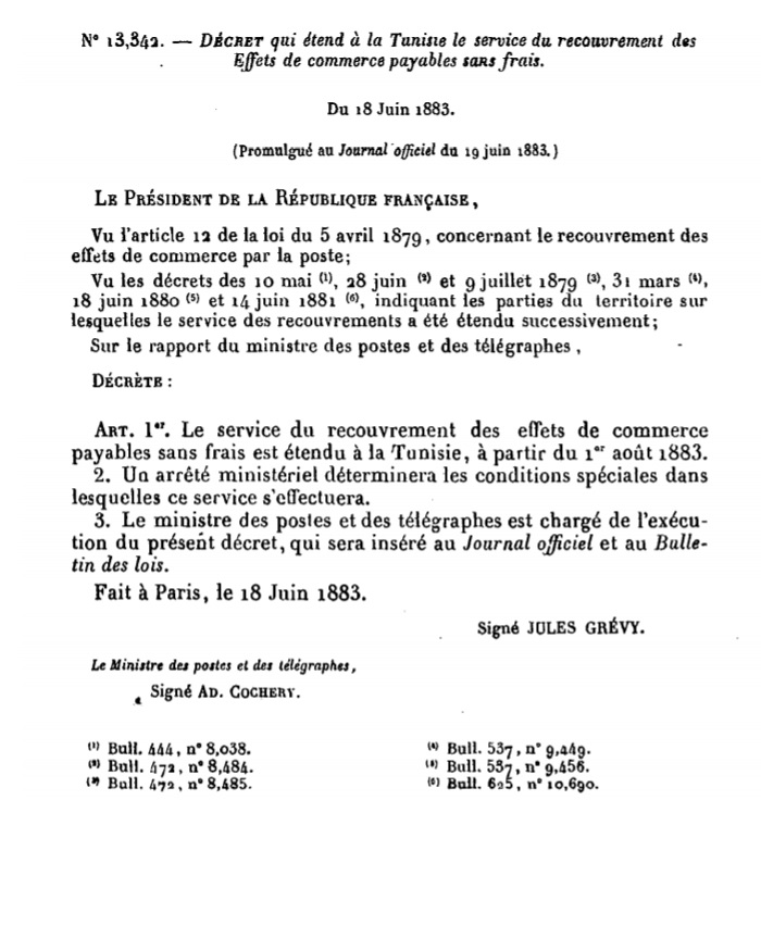 Décret N° 13342 du 18/06/1883 Scan d’un texte officiel publié au Bulletin Officiel des Lois.