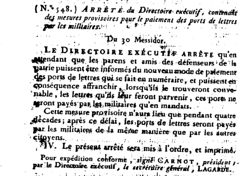 Arrêté N° 548 du 18/07/1796 Scan d’un texte officiel publié au Bulletin Officiel des Lois.