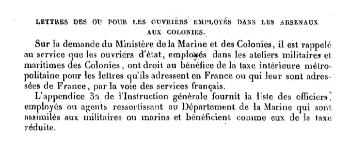 "Lettres de ou pour les ouvriers employés dans les arsenaux aux colonies."