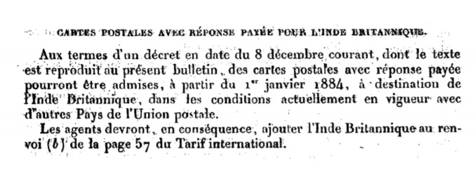 Circulaire de novembre 1883 Scan d’un document officiel publié au Bulletin mensuel des Postes et Télégraphes.