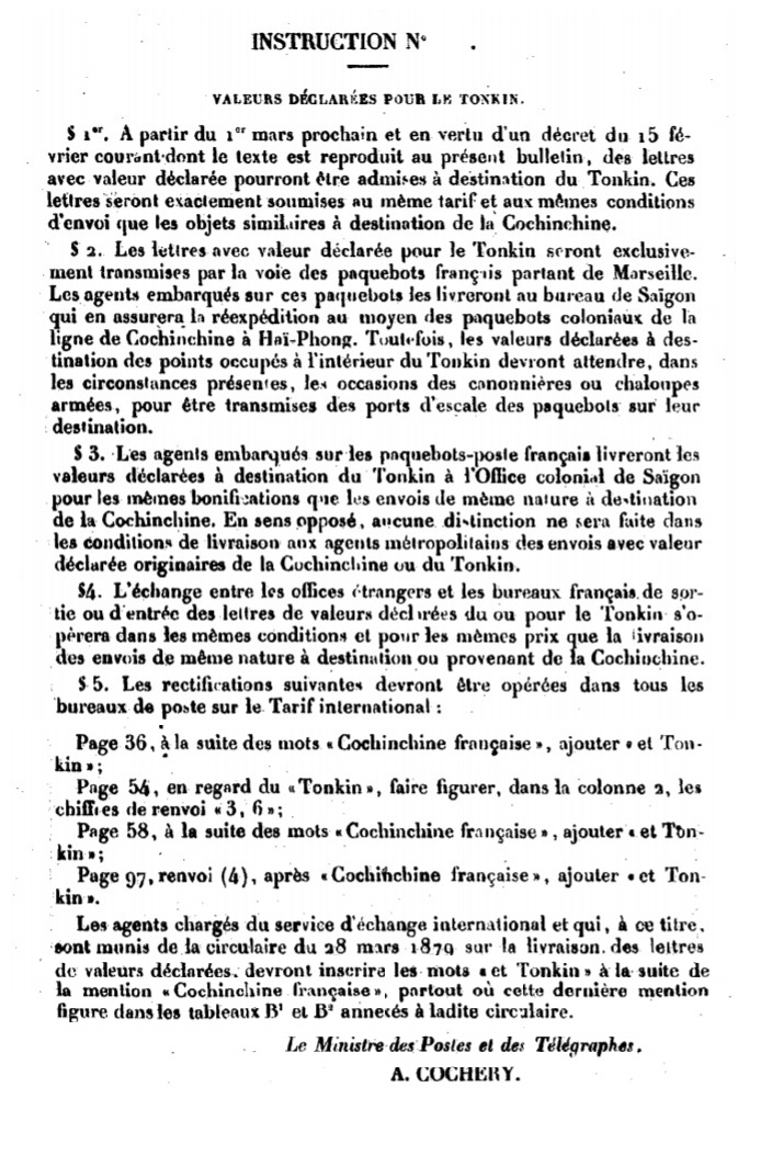 Instruction de février 1884 Scan d’un document officiel publié au Bulletin mensuel des Postes et Télégraphes.