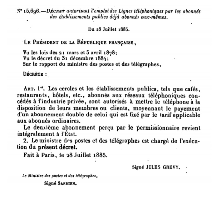 Décret N° 15696 du 28/07/1885 Scan d’un texte officiel publié au Bulletin Officiel des Lois.