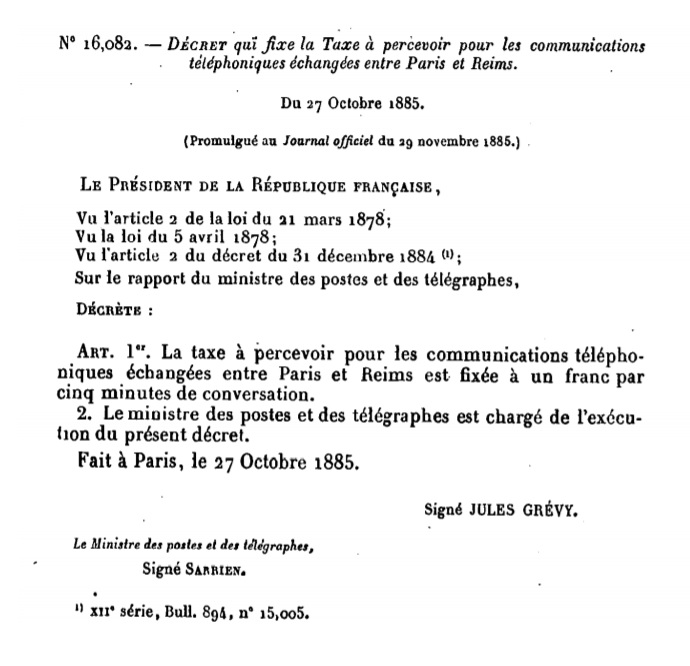Décret N° 16082 du 27/10/1885 Scan d’un texte officiel publié au Bulletin Officiel des Lois.