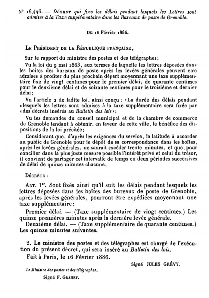 Décret N° 16446 du 16/02/1886 Scan d’un texte officiel publié au Bulletin Officiel des Lois.