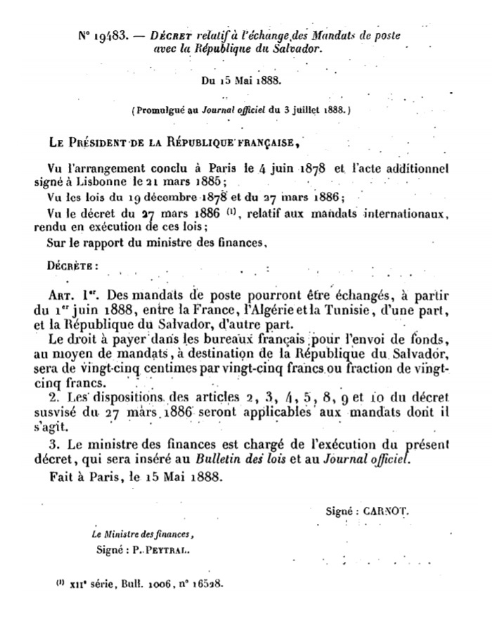 Décret N° 19483 du 15/05/1888 Scan d’un texte officiel publié au Bulletin Officiel des Lois.