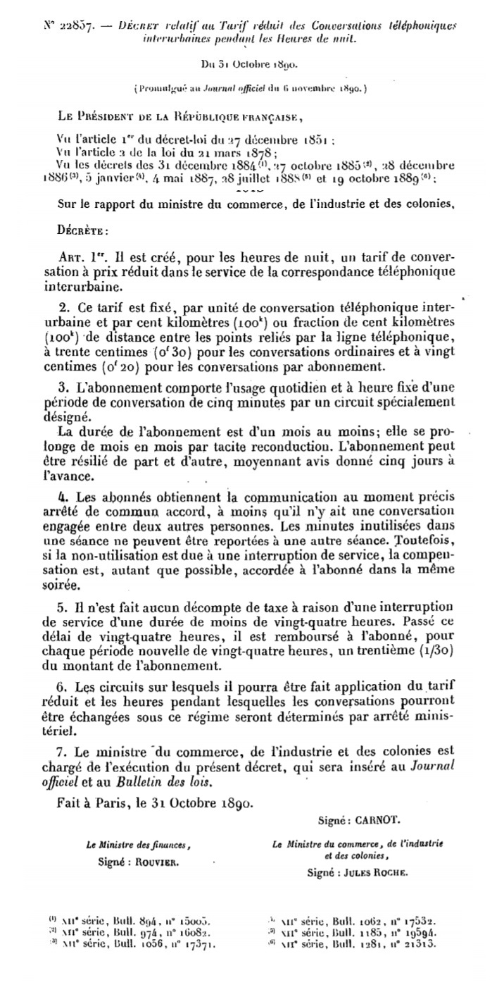 Décret N° 22857 du 31/10/1890 Scan d’un texte officiel publié au Bulletin Officiel des Lois.