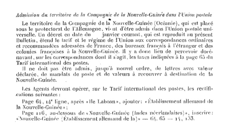"Admission du territoire de la Compagnie de la Nouvelle-Guinée dans l’Union postale."