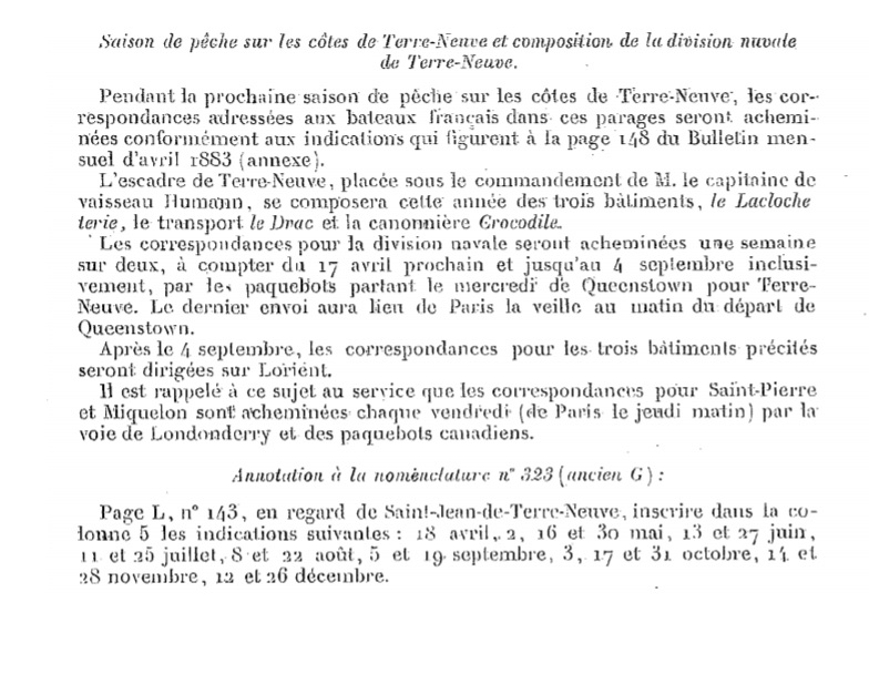 "Saison de pêche sur les cotes de Terre-Neuve et composition de la division navale de Terre-Neuve."