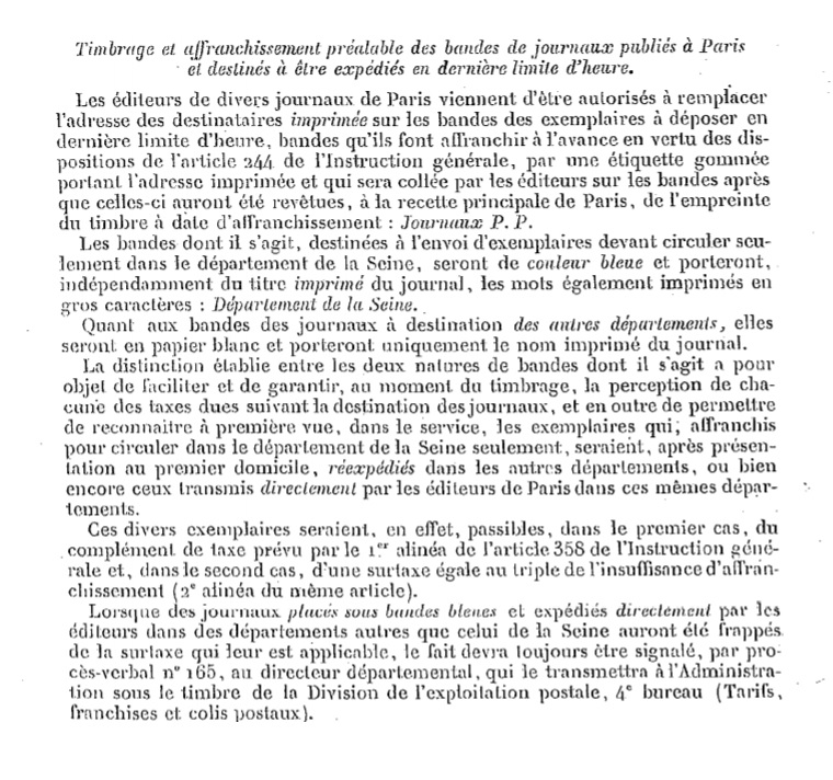 Circulaire d’octobre 1890 Scan d’un document officiel publié au Bulletin mensuel des Postes et Télégraphes.