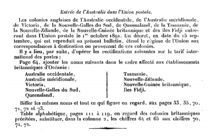 Circulaire d’août 1891 Scan d’un document officiel publié au Bulletin mensuel des Postes et Télégraphes.