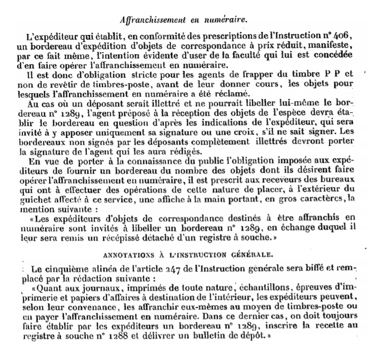 Circulaire de novembre 1891 Scan d’un document officiel publié au Bulletin mensuel des Postes et Télégraphes.