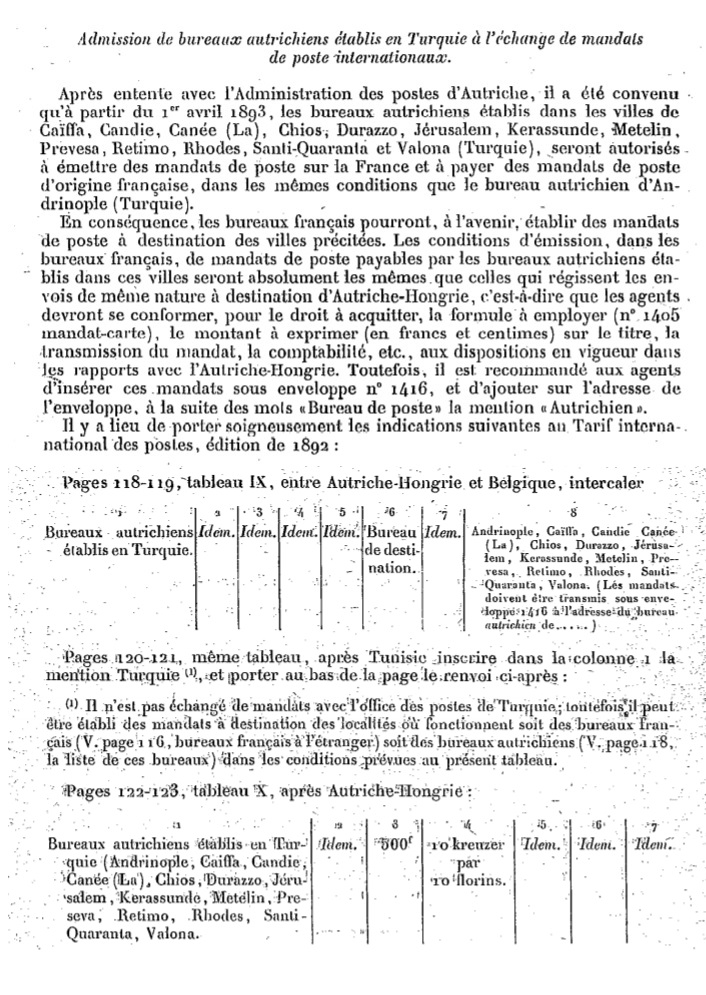 Circulaire de mars 1893 Scan d’un document officiel publié au Bulletin mensuel des Postes et Télégraphes.