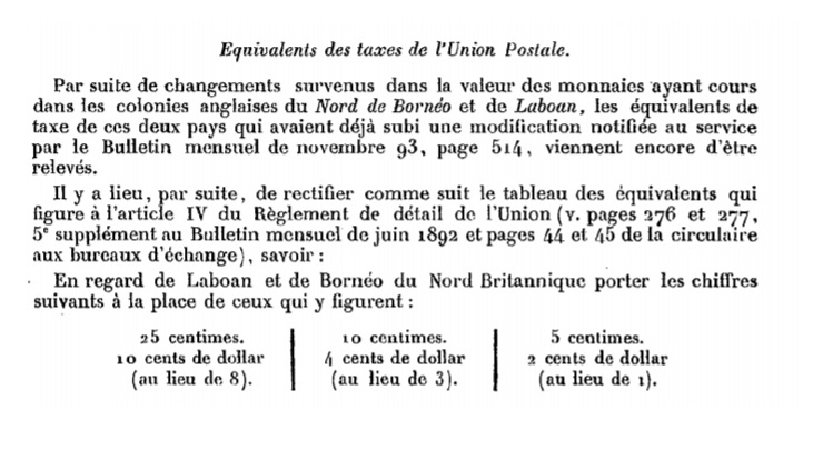 "Équivalents des taxes de l’Union Postale."