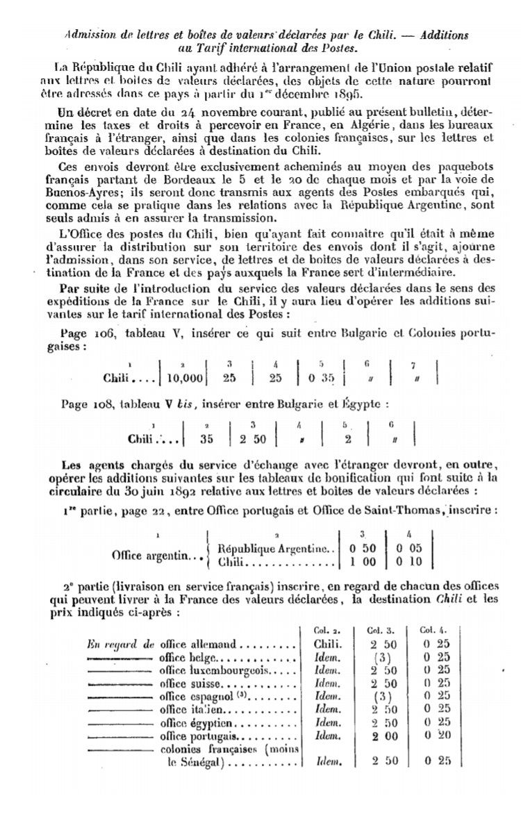 Circulaire de novembre 1895 Scan d’un document officiel publié au Bulletin mensuel des Postes et Télégraphes.