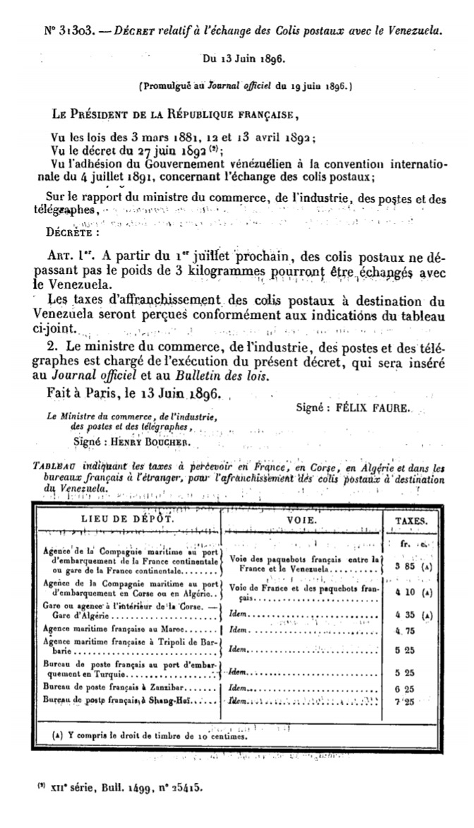 Décret N° 31303 du 13/06/1896 Scan d’un texte officiel publié au Bulletin Officiel des Lois.