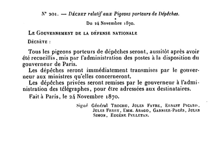 Décret N° 201 du 24/11/1870 Scan d’un texte officiel publié au Bulletin Officiel des Lois.
