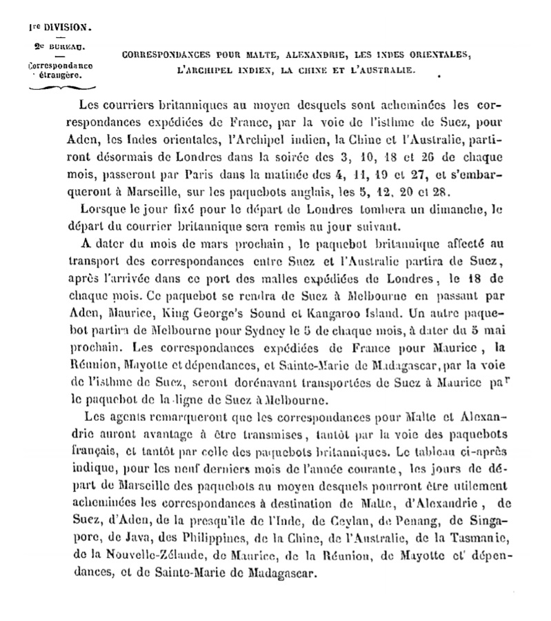 Notification de février 1859 Scan d’un document officiel publié au Bulletin mensuel des Postes et Télégraphes.